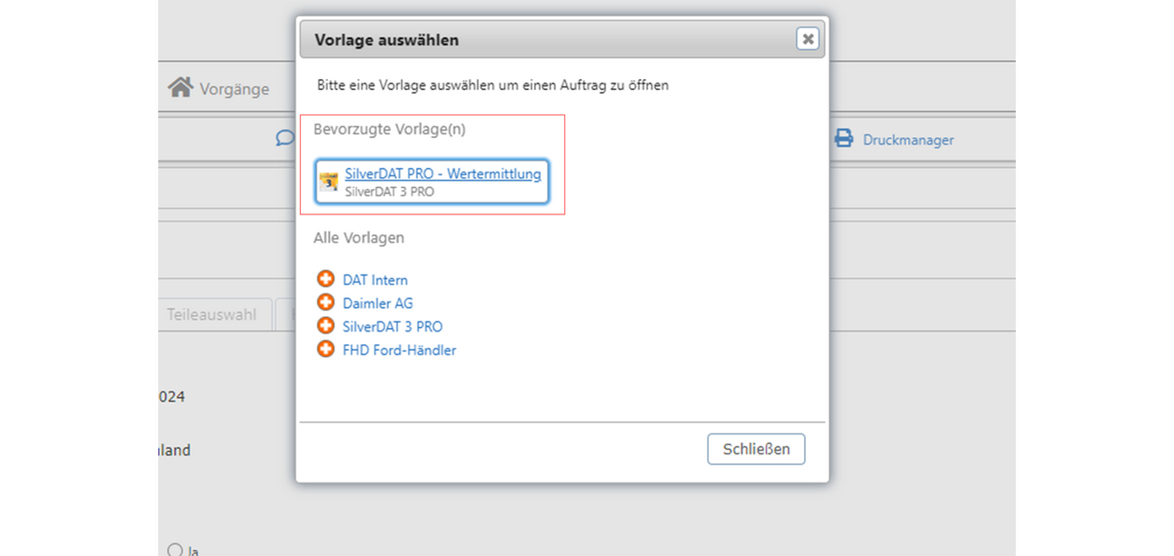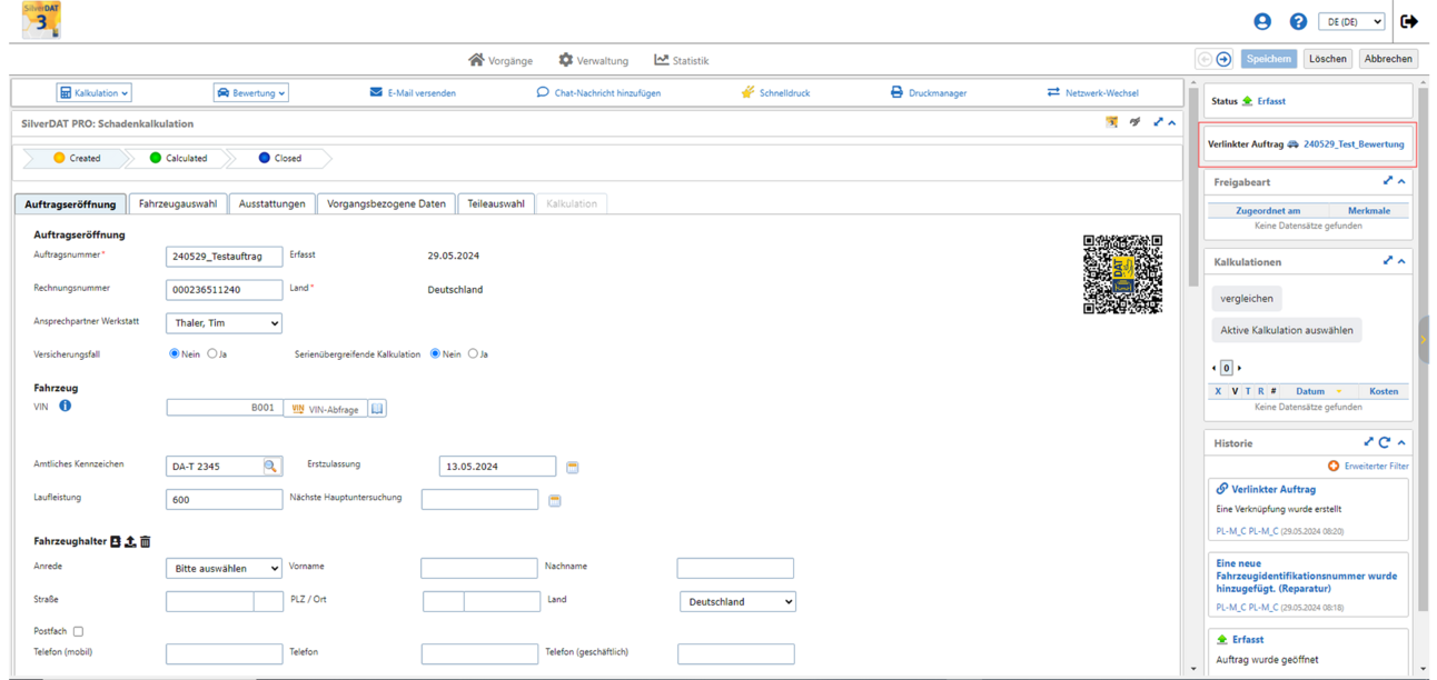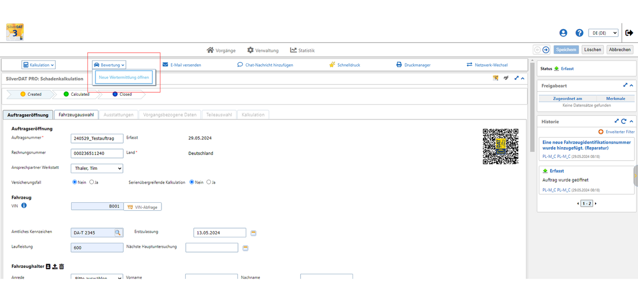 Erstellen Sie einen Kalkulations- oder Bewertungsauftrag in SilverDAT3.