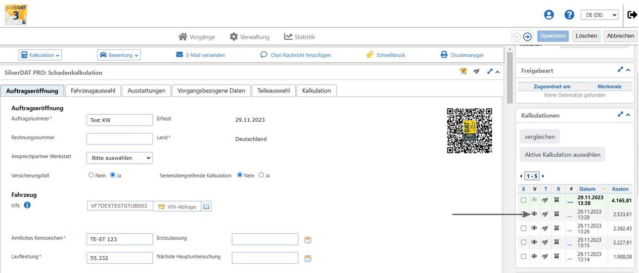 - Die Rolle Versicherung ist bereits durch die Benutzereinstellungen (siehe erläutertes Vorgehen der Möglichkeit 1) abgewählt und hat daher automatisch keinen Zugriff auf die durch die Werkstatt erstellten Kalkulationen.
