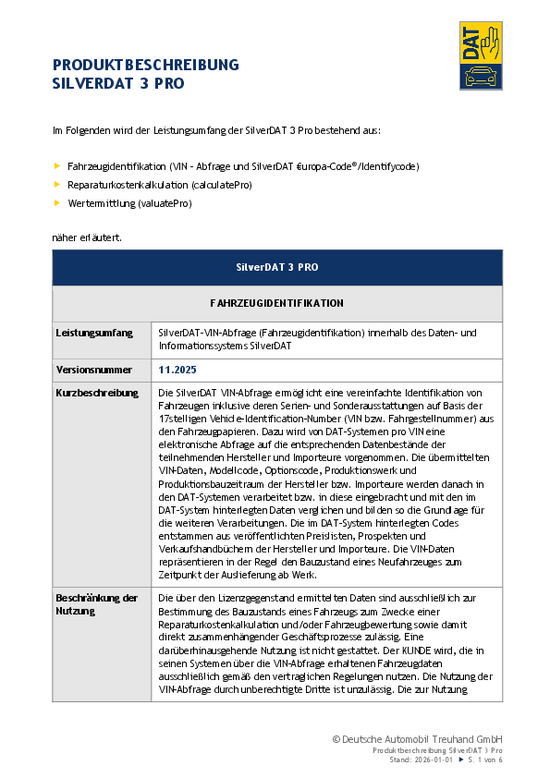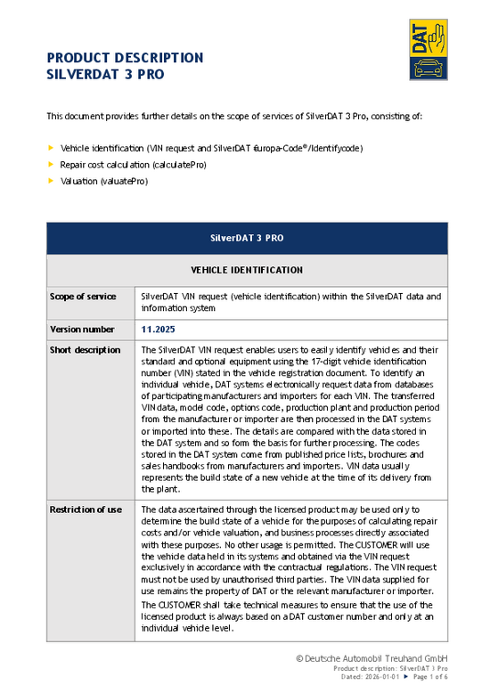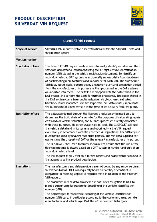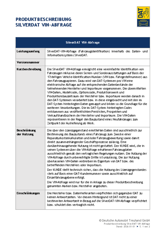 Produktbeschreibung SilverDAT VIN-Abfrage – English version