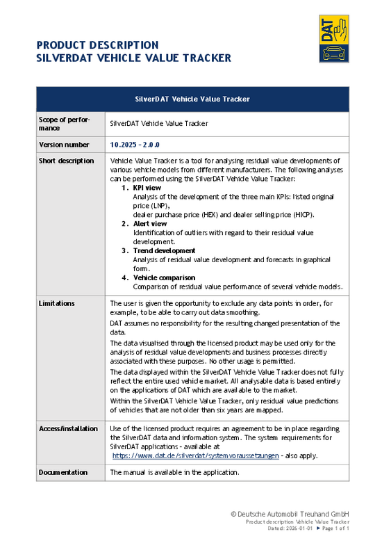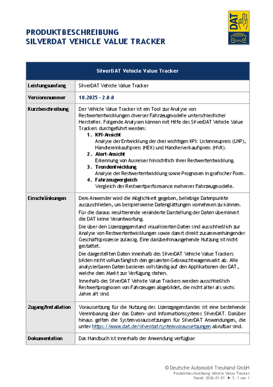 Produktbeschreibung SilverDAT Vehicle Value Tracker – English version