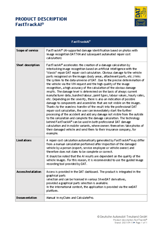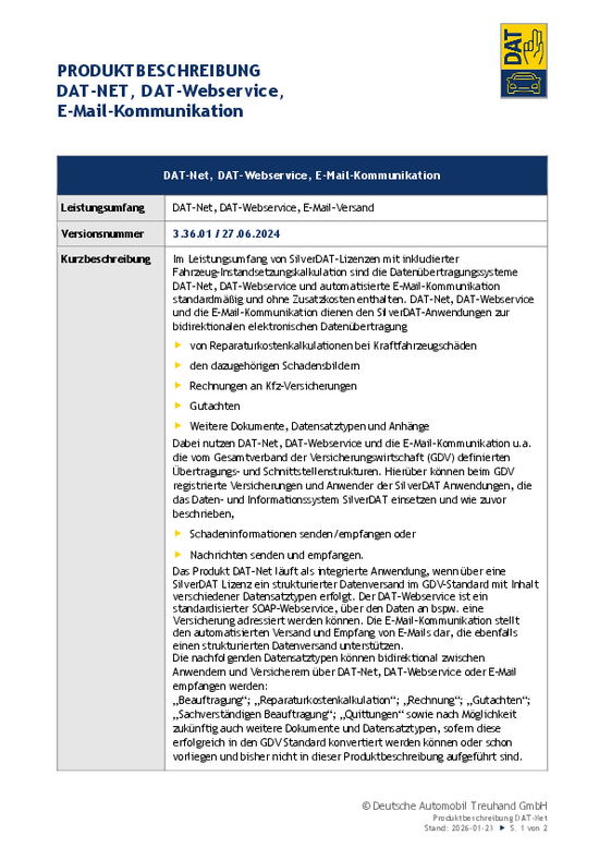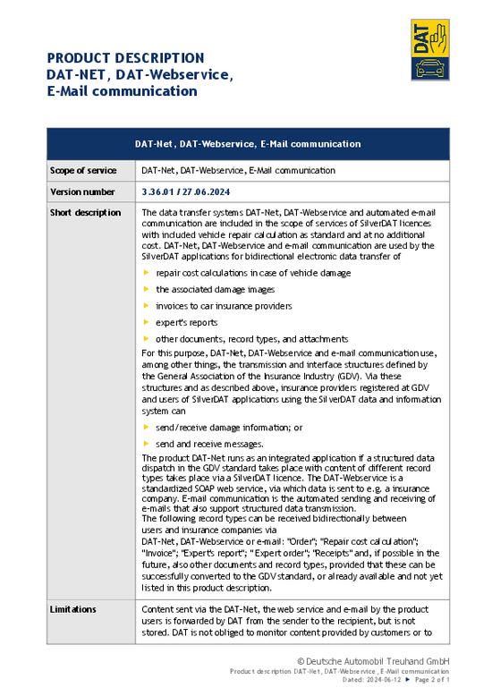Produktbeschreibung DAT-Net, DAT-WebService, E-Mail-Kommunikation – English version