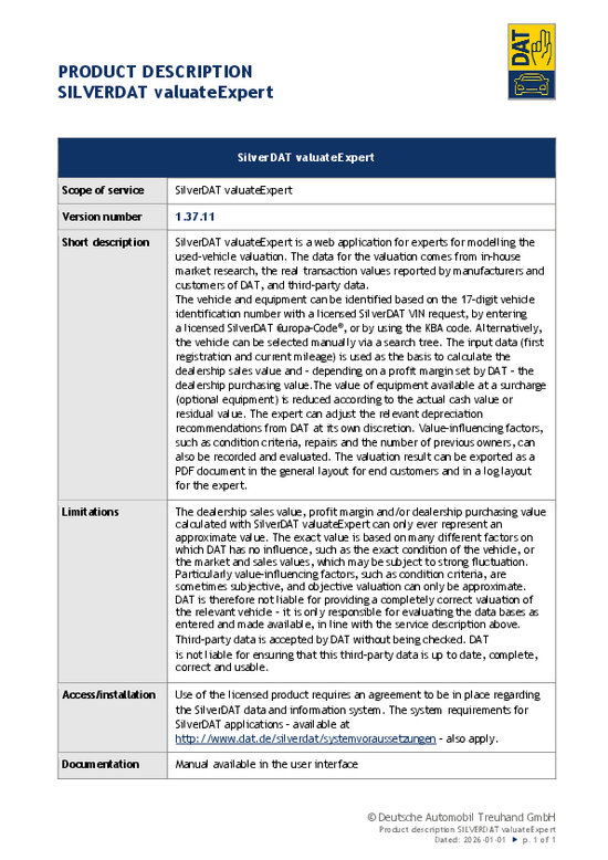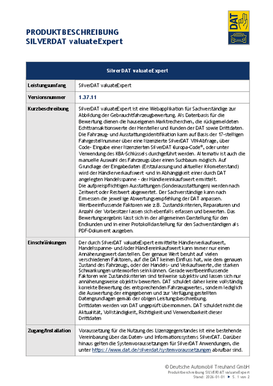 Produktbeschreibung SilverDAT valuateExpert – English version