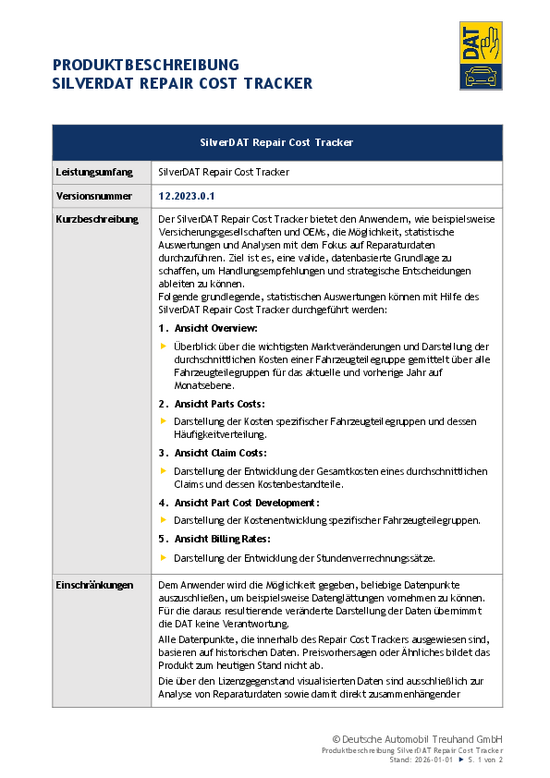 Produktbeschreibung SilverDAT Repair Cost Tracker – English version